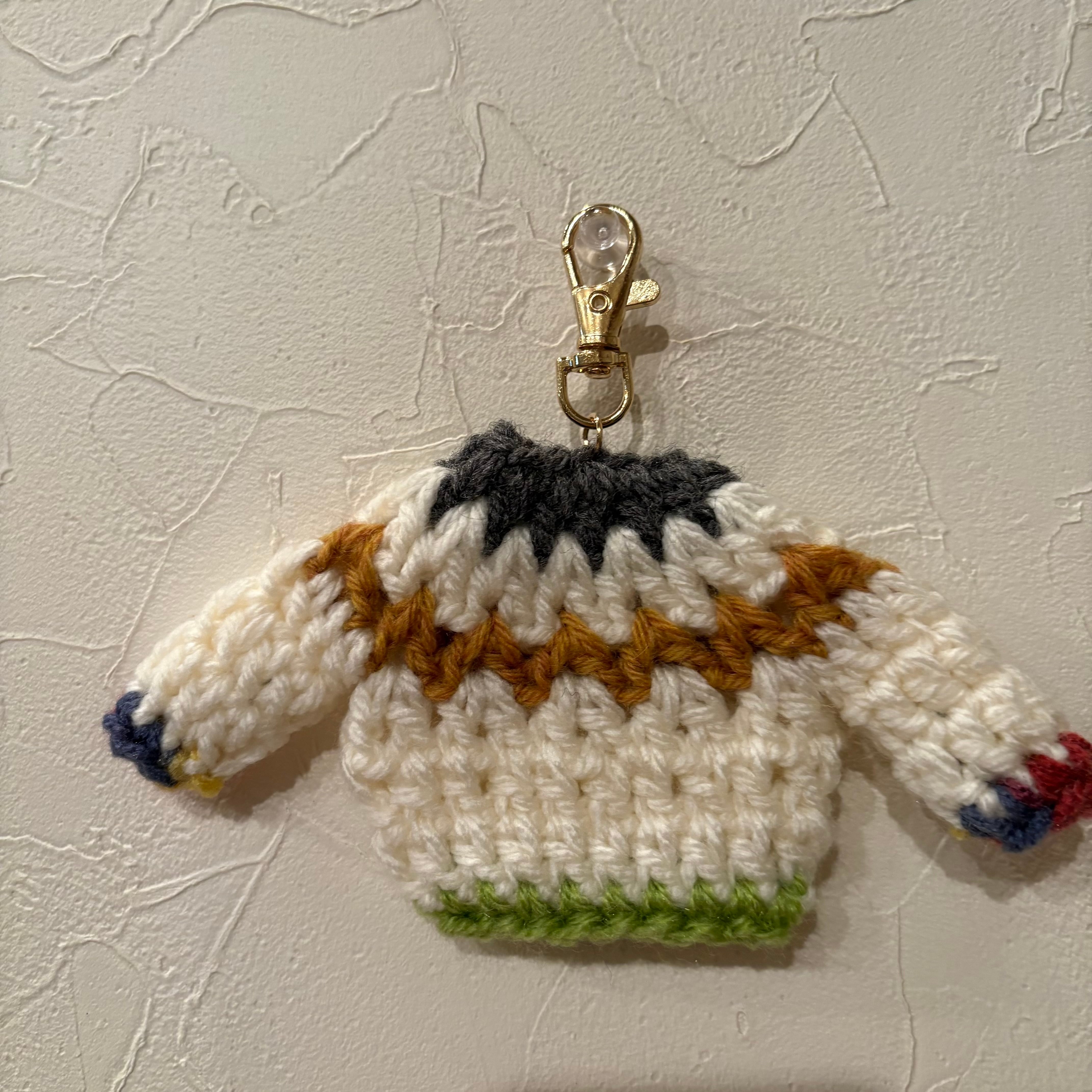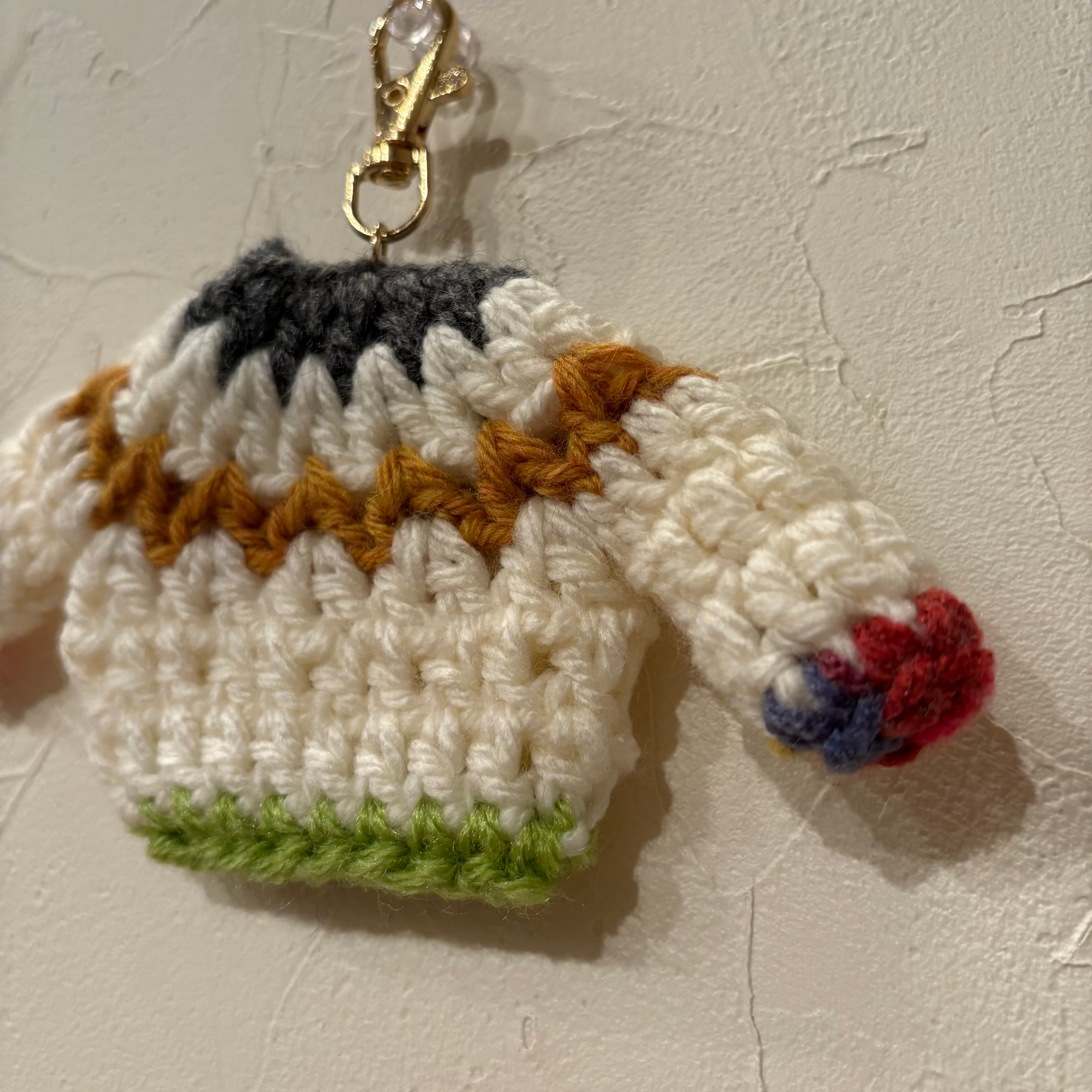 セーターのサイズは縦:約7cm 横:約15cm です。(キーホルダーの部分を含まない。)